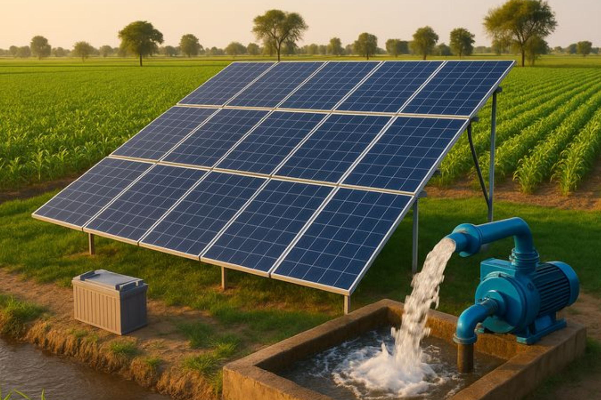 Solar water pumping systems operate using clean solar energy, reducing dependence on electricity and fossil fuels while protecting the environment.